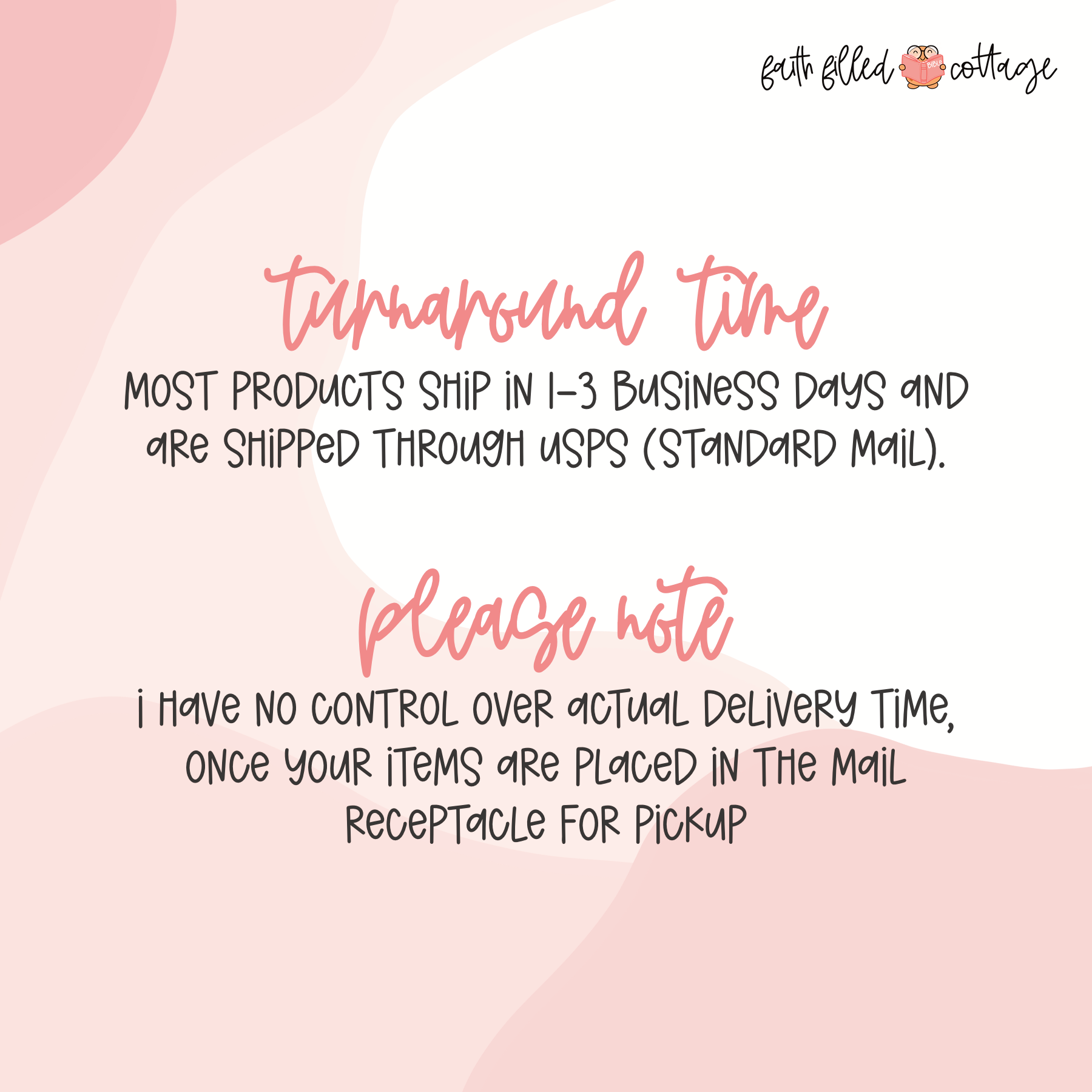 - All orders are processed and shipped within 1-5 days of order